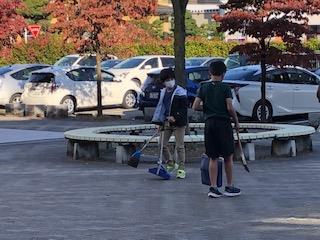 今日は朝からとてもいい天気でした。爽やかな青空の下、委員会活動に一生懸命取り組む子供、グラウンドを走り、体力づくりを頑張る子供など、思い思いに朝の活動を楽しんでいました。