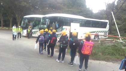 バスに乗って学校に向かいます。