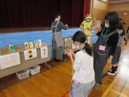 教室では謎解きや折り紙、体育館では射的や缶積み競争のゲームに挑戦、そしてくじ引きと楽しい時間を過ごしました。