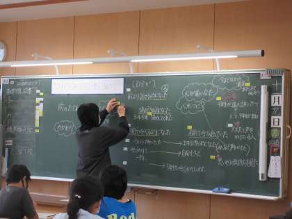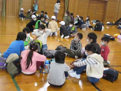 振り返りをしました。自分が仲間とどのように関わったのかを考え、「寒かった時に声をかけ合った」「○○までもう少し! 一緒に頑張ろう」など、温かい言葉をかけ合うことができたと振り返りました。
