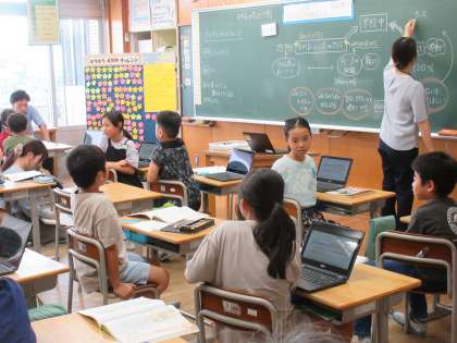 教材文「えがおの花大作戦」をもとに学習しました。子供たちは、自分や自分のクラスのことを思い出しながら、考えや想いを活発に交流していました。