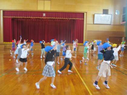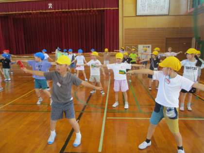 体育館で、並び方や移動の仕方の確認をしました。ダンス練習では、元気いっぱいに踊る子供たち。本番に向けて、パワーアップしています。