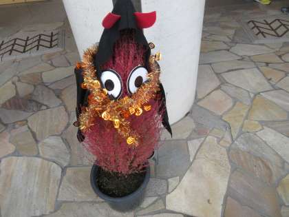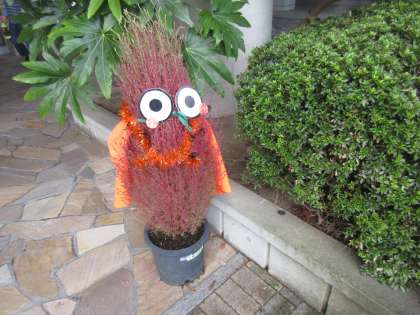 にこさわ広場のコキアがハロウィンの衣装に!華道クラブの子供の作品も、秋を感じさせてくれます。