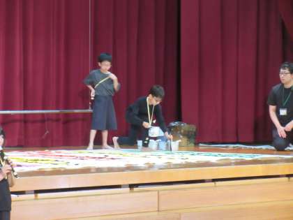 3年生「Hop!Step!!Jump!!!〜表現しよう 筆と音色で わたしたちの書道パフォーマンス〜」