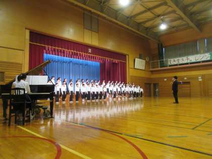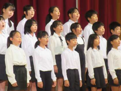 「マイバラード」と「心が今日も笑顔」の2曲を合唱しました。昨日の音楽会でも頑張ってきた5年生。今日の歌声も大変素晴らしかったです。