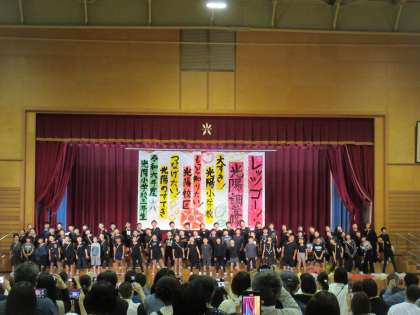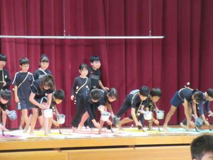 今日は学習発表会本番でした。約一か月半の間、書道、ダンス、合奏のパートに分かれて毎日練習してきました。手を真っ黒にしたり汗だくになったり難しいリズムを覚えたりと、とても大変でしたが、みんな素敵な発表にしようと、一生懸命取り組みました。本番は、練習してきた自分を振り返り、自信をもって今までで最高の演技をすることができました。みんな大満足の笑顔にあふれていました。
