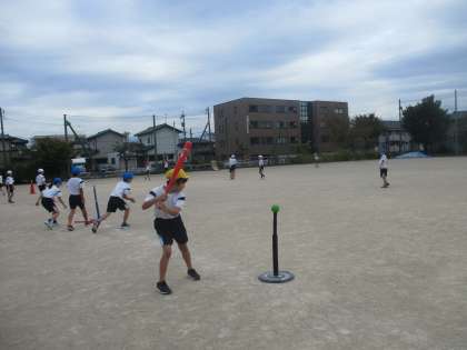 体育科では、Tボールの学習が始まり、まずはバッティングの練習を頑張りました。