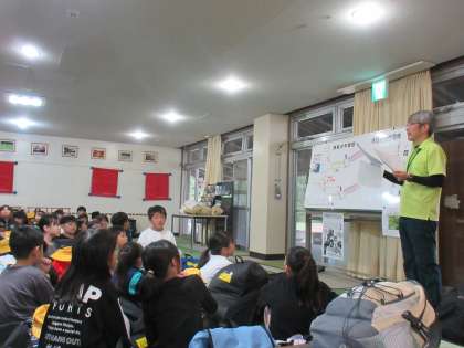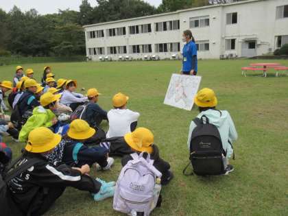 森の木オリエンテーリングでは、班の仲間と協力してポイントを見付けたり、教頭先生から出されたクイズに挑戦したりしました。