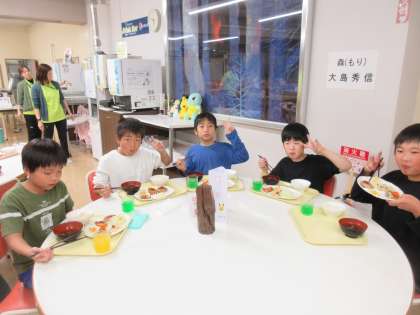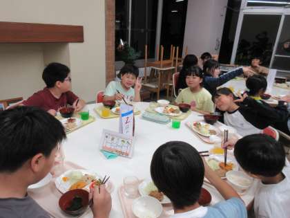 夕食の時間。「おいしい!」と言って、たくさんおかわりして食べていました。