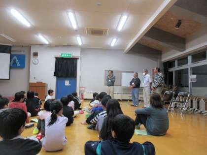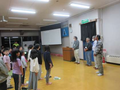 あいにくの曇り空のため星空観察はできませんでしたが、天文学会の方がスライドを見せながら星座のことや彗星のこと等を教えてくださいました。