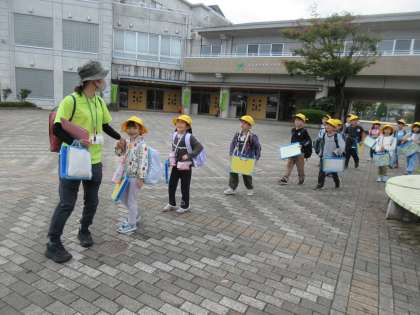 待ちに待った遠足の日。元気いっぱい、出発しました。
