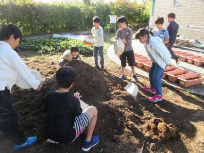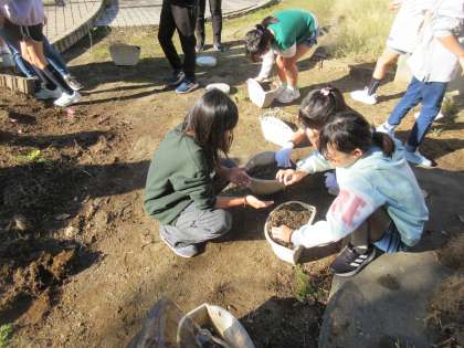 春から長い間遊歩道を彩っていたプランター。秋になり花が枯れてきたので、みんなで取り外して、片付けました。