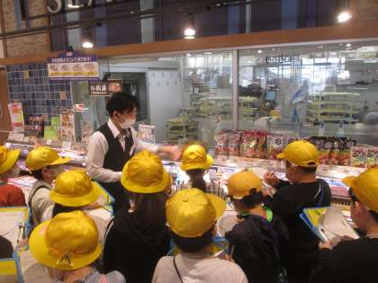 スーパーマーケットへ社会科見学に行ってきました。店長さんから直接お話を聞いたり、バックヤードを見せてもらったりしてたくさん学びました。