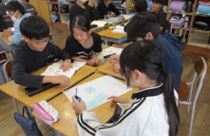 「よりよい学校生活を目指して」では、考えをまとめる話し合いをするために、どんなことに気を付けるとよいかを話し合いました。実際に、司会者、記録者、タイムキーパーに役割を分担して話し合いました。