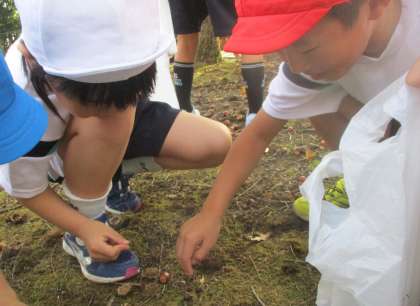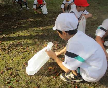 光陽小学校の秋みつけをしました。2種類のドングリや、きれいな色の落ち葉を拾って嬉しそうな子供たちでした。また、週末に公園等に行かれた際は、秋みつけをしてみてください。