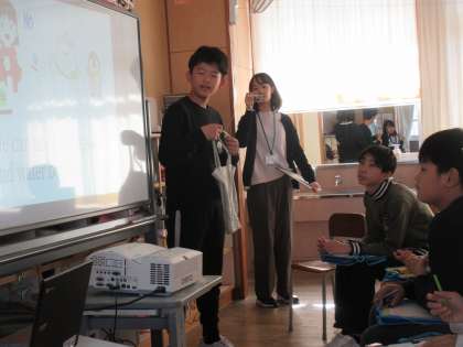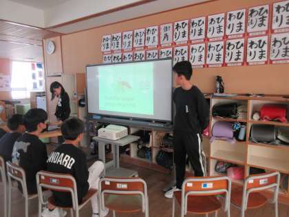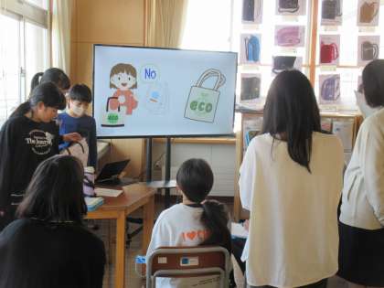 「Save the animals.救いたい生きものや身近でできことについて考えよう」の学習の様子です。