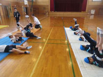 講師の方をお招きし、一緒にマット遊びをしました。たくさん褒めてもらって、技能だけではなく、やる気もぐんとアップした子供たちでした。