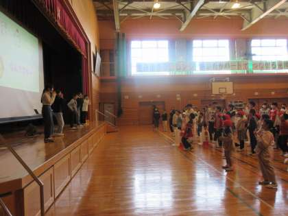 本校の全校集会の定番となった「ぴよぴよさんゲーム」や「進化ゲーム」で盛り上がりました。光陽っ子の笑顔が輝く素敵な集会になりました。