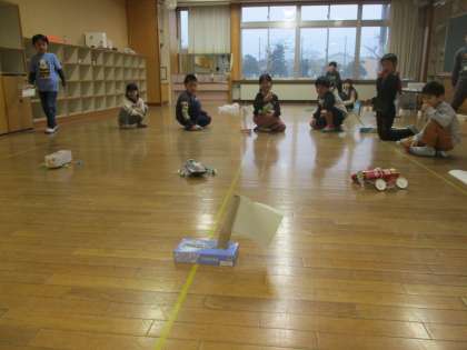 とっておきの車が完成し、その車を使って、楽しく遊ぶための準備をしています。どうやったらもっと楽しくなるのか、グループの友達と相談しながら準備をしていました。