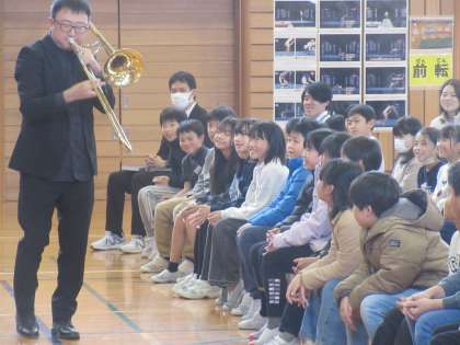 楽曲「情熱大陸」の演奏に合わせてのリズム打ちや金管楽器に関するクイズ等、楽しいことが盛りだくさんのコンサートでした。