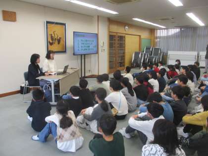 今日は外部の講師の先生をお呼びして、「がん」について実体験をもとにお話しいただきました。子供たちはとても真剣な様子で聞いていました。