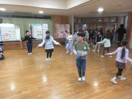 3年生の子供たちは、縄跳び運動が大好きです。みんなで技を見せ合ったり、回数を競い合ったりして楽しんでいました。