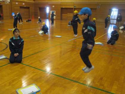 体育の時間になわとびの練習をしました。子どもたちは、新しい技や苦手な技にどんどん挑戦していました。
