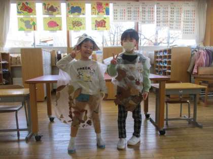 あきのおもちゃが完成しました。友達に遊び方を説明したり、試してもらったりしました。