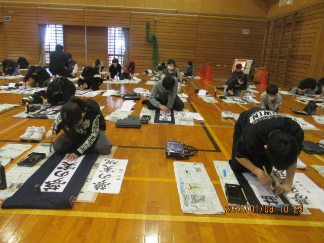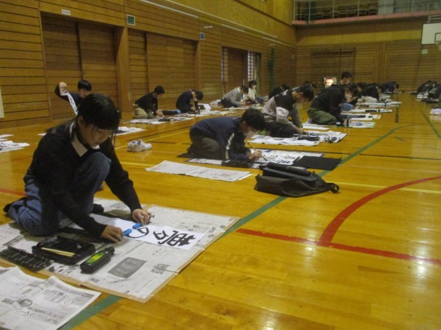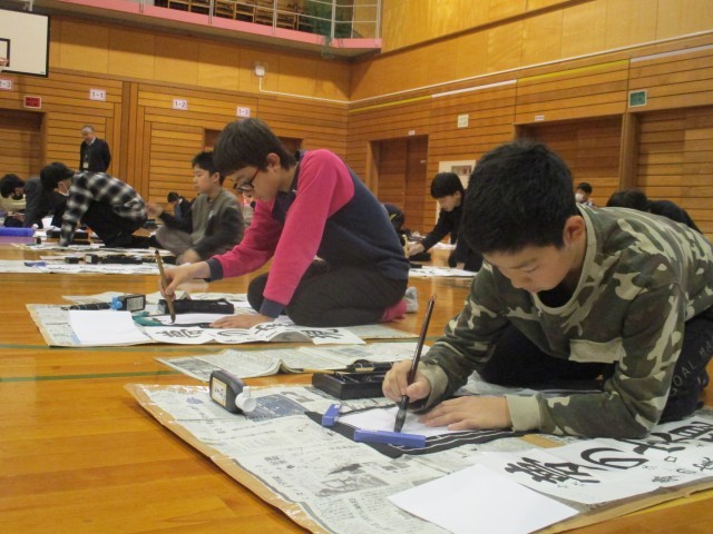 今日は書き初め大会が行われました。全員、真剣な様子で取り組んでいました。