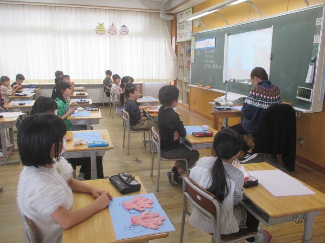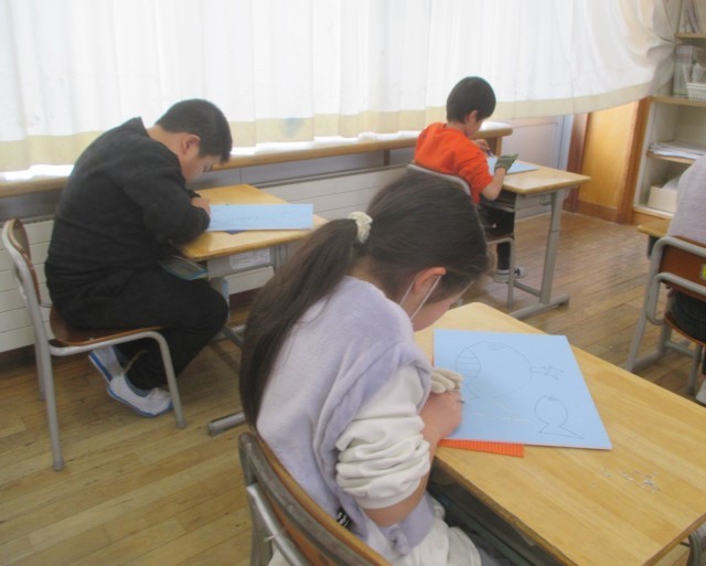 図画工作科の学習では、彫刻刀を使って版画に挑戦しています。