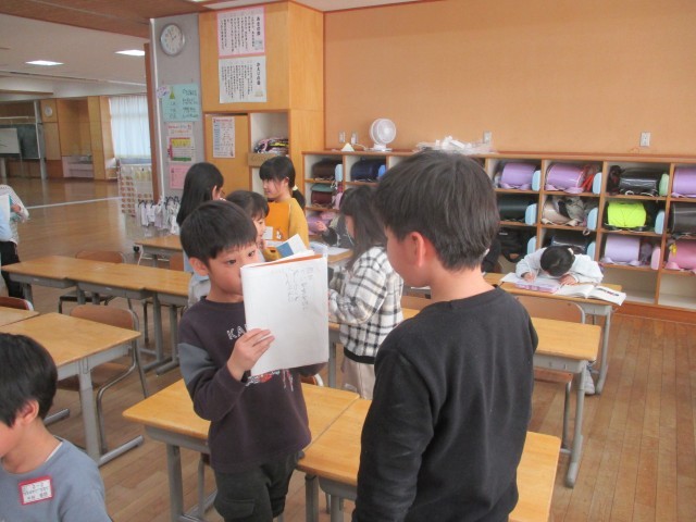 国語の学習で「ロボット」という説明文を読んでいます。今日の学習を通して自分が考えたことを、いろいろな友達と伝え合いました。
