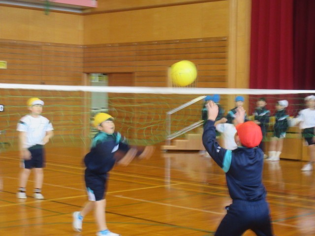 ネット型ゲーム「キャッチバレーボール」の学習をしています。