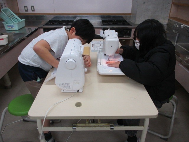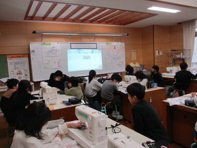 ミシンの糸とおしの仕方を学習し、実際にミシンにセッティングしました!慎重に作業しています。