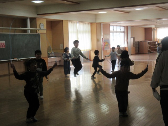 あや跳びやかけ足跳び等、担任の先生にできるようになった技を「見て!」と嬉しそうに報告する姿がたくさん見られました。