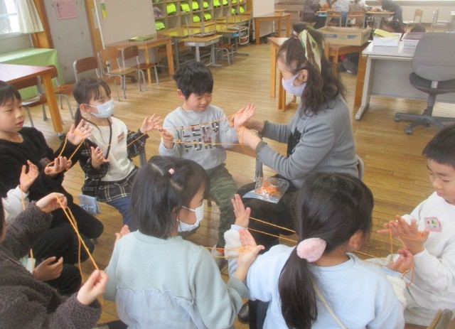 本日は、地域の伝承あそび名人の方に学校に来てもらい、伝承遊びを教えてもらいました。
