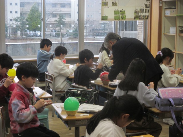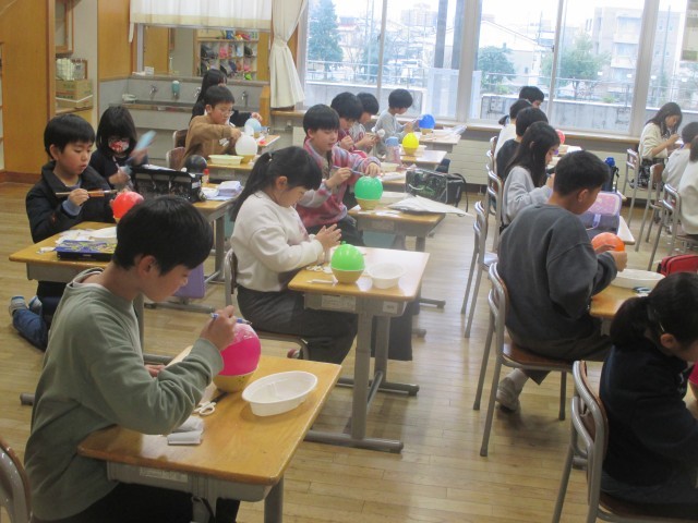 社会科で特色ある地域の学習を行っています。子どもたちはランタン作りを通して、伝統的な工芸品等について学習することへの意欲を高めていました。