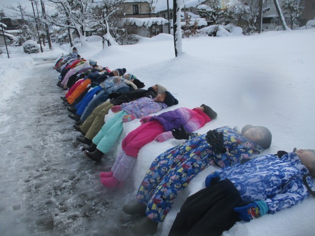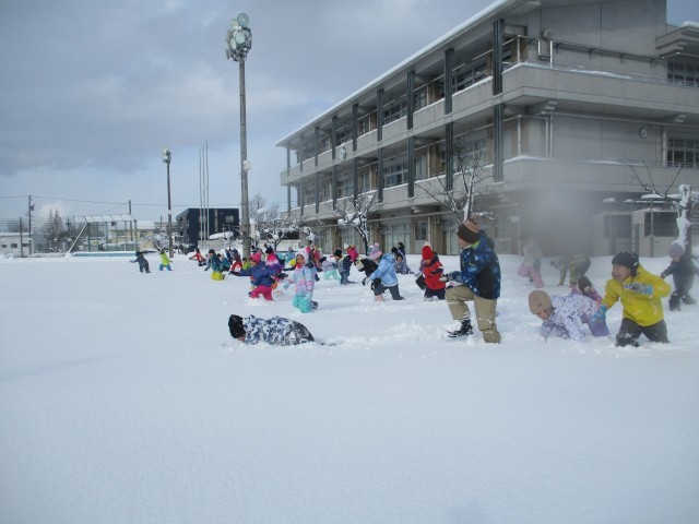 さらさらの雪の感触に「気持ちいい♪」と嬉しそうな子供たちでした。