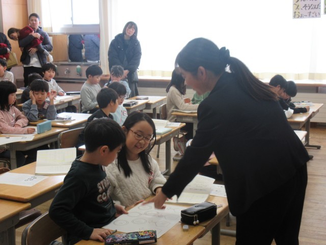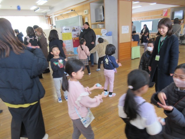 1年生は生活科で、昔遊びの名人を目指して、9つの遊びに挑戦しました。おうちの方も一緒に楽しく遊び、笑顔がいっぱいでした!