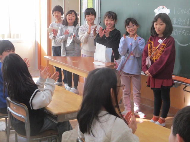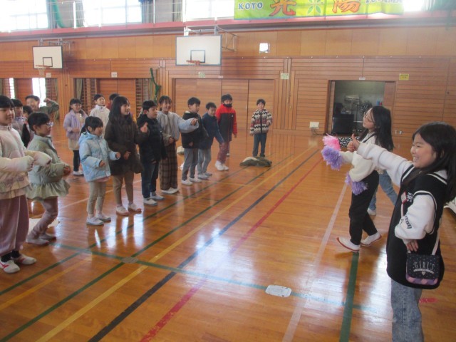 係ごとに出し物をする、クラス集会を開きました。ニュース係が素敵な行動をした友達を発表したり、スポーツ係がドッジボールのコツを教えたりしました。うたダンス係は、クラスで人気の曲を披露し、最後にはみんなで一緒に踊って楽しみました。