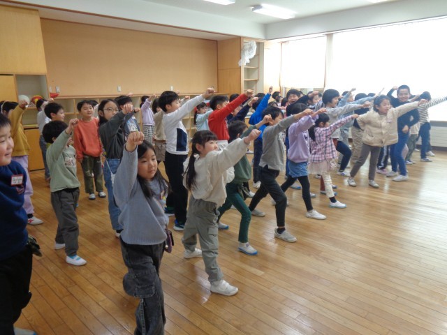 今日はせりふに動きを付けたり、ポーズの練習をしたりしました。ありがとうの気持ちが伝わるようにと、心をこめて一生懸命取り組みました。
