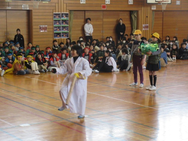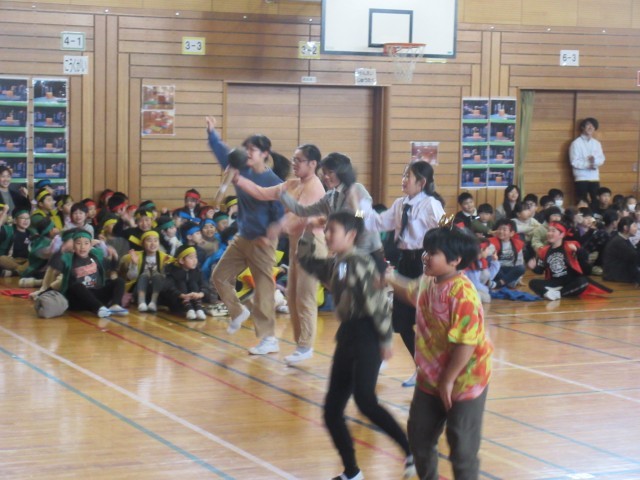 今回の集会を企画、運営した5年生の子供たち。プレゼントの、劇やダンスを盛り込んだクイズもさすがでした。
