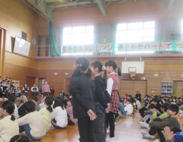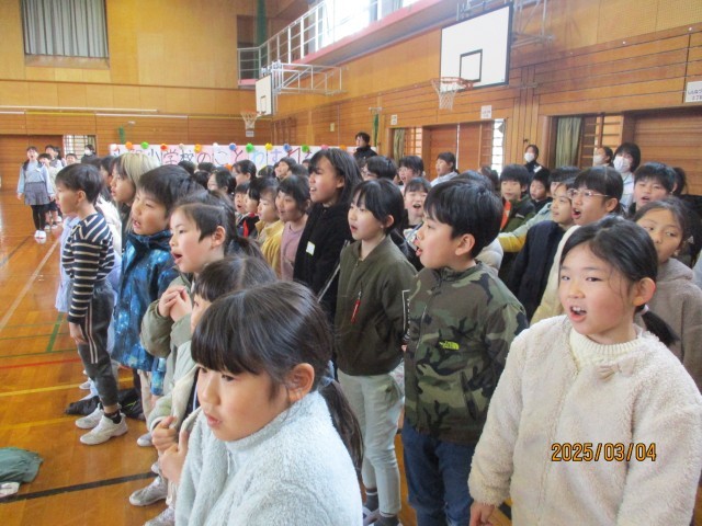 卒業を祝う会で6年生さんに感謝の思いを思い切り伝えている子供たちです。