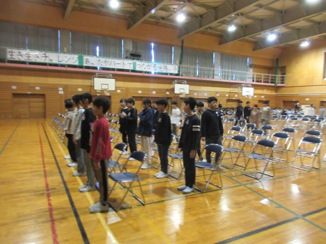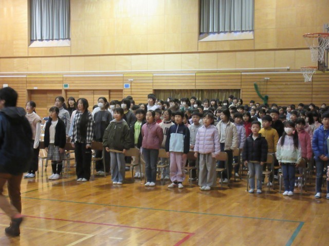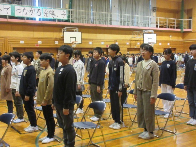 今日は、入退場の練習や、国歌、校歌の練習をしました。