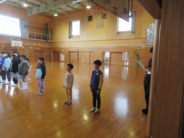 のびのびタイムに、門出の言葉の代表児童が集まり、練習を行いました。