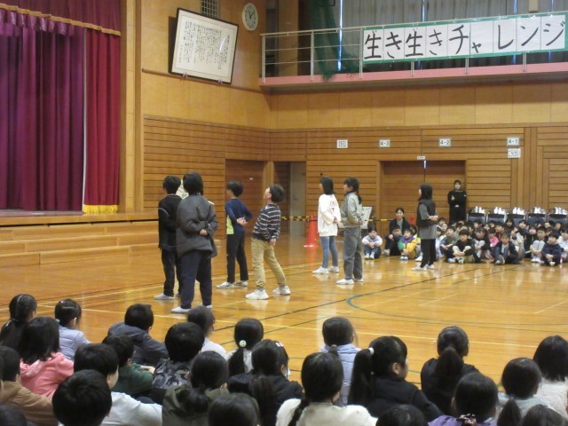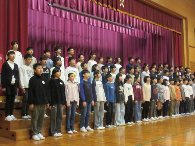 後半は、5年生が中心となって行う歓送会の練習をしました。18日は、卒業生のみなさんにとって心に残る日になるよう、在校生の心を一つに頑張ります。