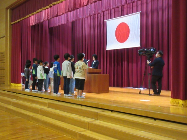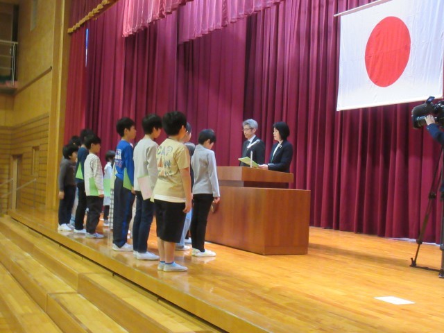 令和6年度の修了式を行いました。各学級の代表児童が校長先生から修了証を受け取りました。