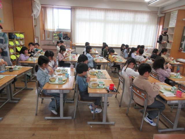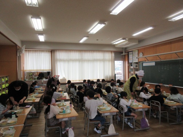 今日の給食は、やきそばでした。ちぎったコッペパンに挟んで、焼きそばパンにしている子供もいました。