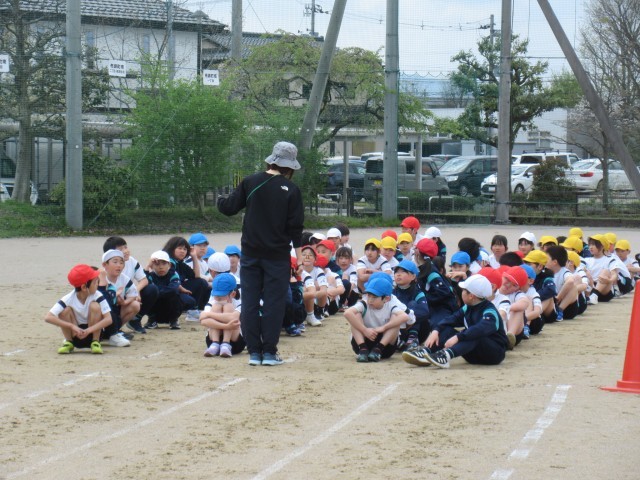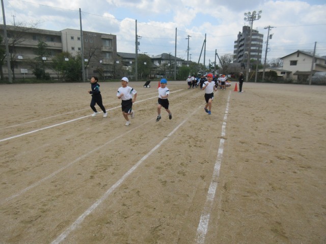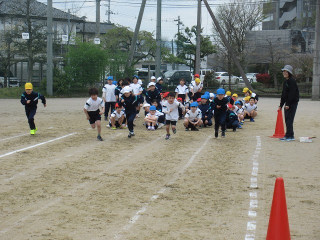 50メートル走のタイムを計りました。追い風が味方してくれたこともあり、前回よりもぐんと記録が縮まった子供がたくさんいました。