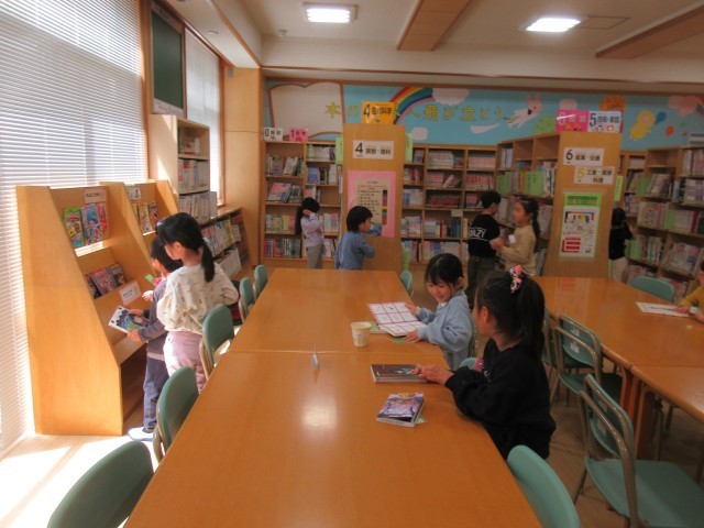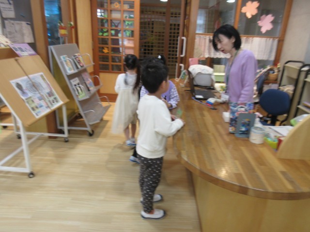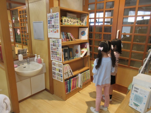 たくさんの本の中から、どれにしようかなかなか選べない子供も・・・。これから色々な本に親しんでくださいね!