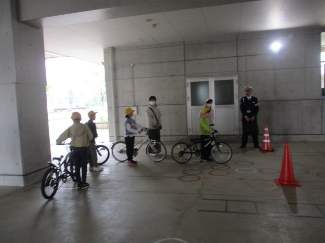 教室では交通ルールについて、ピロティーでは実際に自転車に乗ってどのように運転するかを学びました。